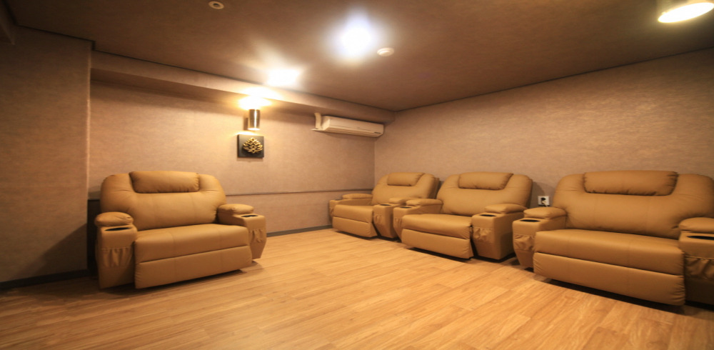 자 이제 예약 확인까지 마치게 되면 매장을 슬쩍 더 살펴볼텐데요, 이곳은 고객님들이 대기를 하거나 쉬실 수 있도록 만들어둔 공간입니다. 쇼파도 굉장히 푹신한걸로 고객님들이 편안한 공간에 계실 수 있도록 사장님께서 개시를 해두셨다고 하는데요~ 샵은 24시간 연중무휴로 영업을 하고 있어서 언제든지 원하시는 시간대에 예약을 하시고 방문을 하시면 마사지도 받고 여러군데 휴식공간에서 자유롭게 안정을 취하고 가실 수 있습니다.
