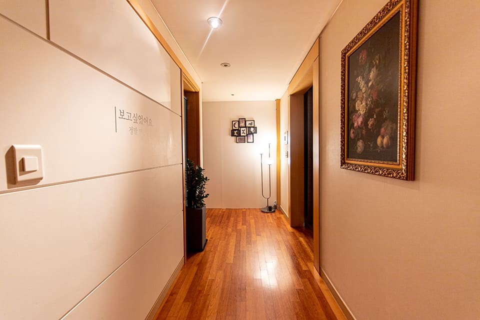 오른쪽에는 멋스럽고 고급스러워 보이는 액자가 큼지막하게 하나 걸려 있어요. 미술관 스러운 아늑한 조명도 좋고, 웬만한 에스테틱 샵 못지 않은 인테리어라 시설적으로도 역시나 전혀 부족한게 없어 보이네요^^