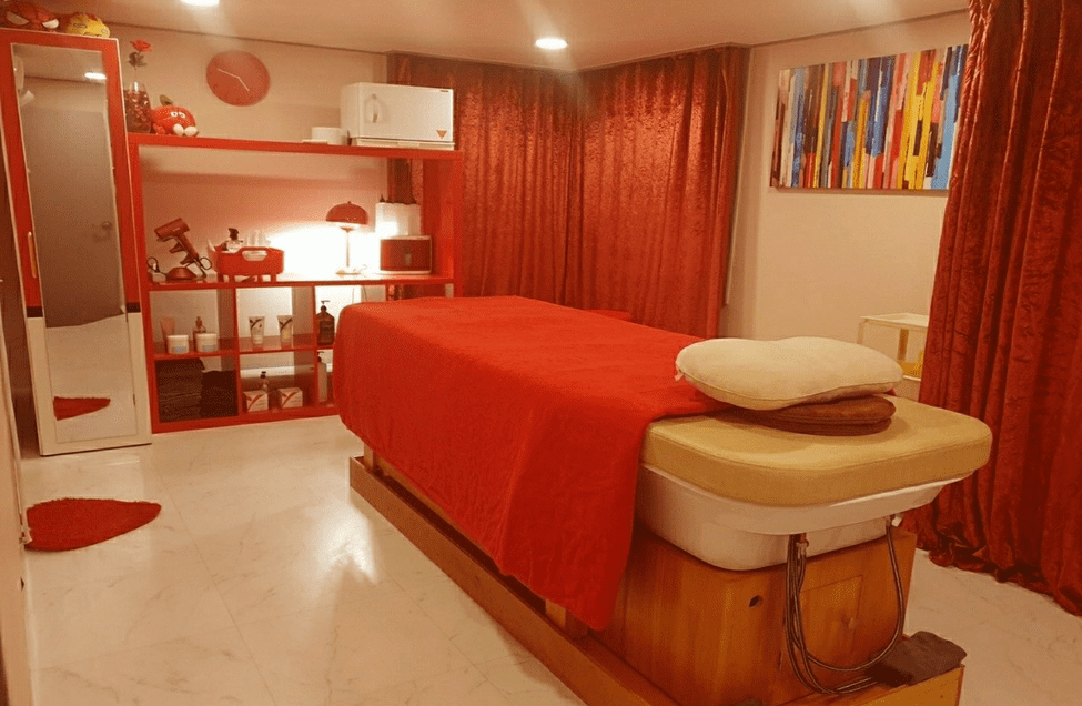 청담동 스웨디시 강남 프레스티지VIP의 관리실 모습입니다. 로비와는 또다른 분위기이고, 정열적인 레드톤으로 되어 있어서 집중할수 있는 공간이라고 생각이 듭니다. 관리실 전체적으로 정리가 잘 되어 있고, 베드 또한 최신식으로 설치되어
