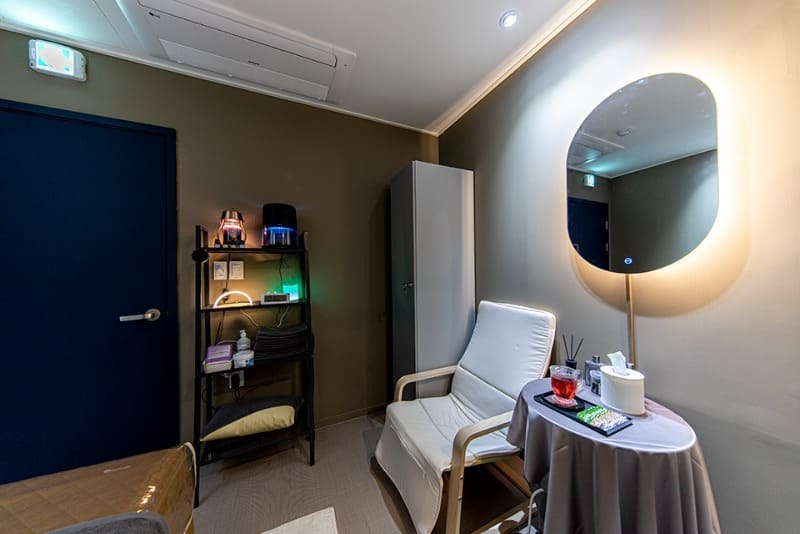 다산동 스웨디시 남양주 다산하우스플리스테라피 관리실 내부의 모습입니다. 어딘가 모르게 공간 활용을 잘 하고 있는 곳으로 테이블과 의자를 통해 관리 받기 전후로 신체에 시너지효과를 주는 아로마 차가 준비되어 있습니다. 곳곳에 놓여있는 향초와 디퓨저들은 코 끝을 자극하며 기분좋은 하루를 선사하고 있습니다.